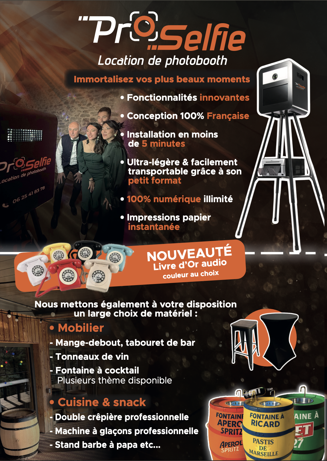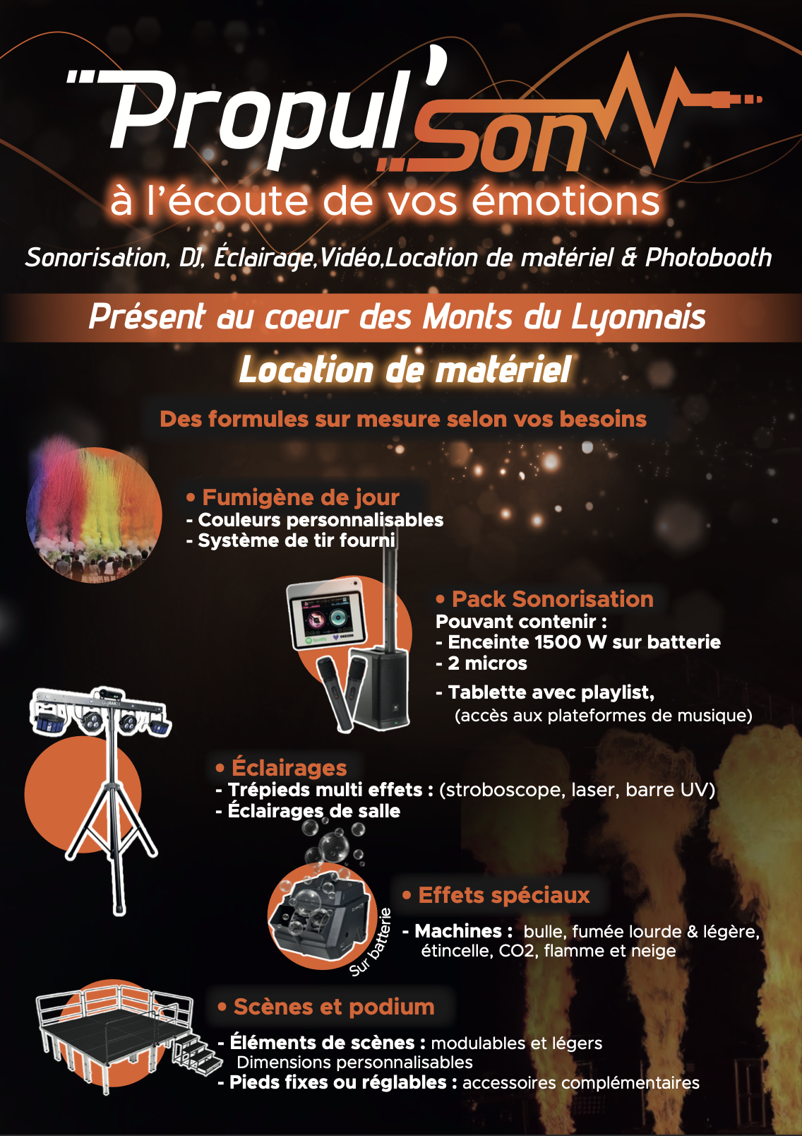 – Enceintes (sur batterie) + micros– Ecran + vidéo projecteur– Abonnement Karafun (musique illimitée)